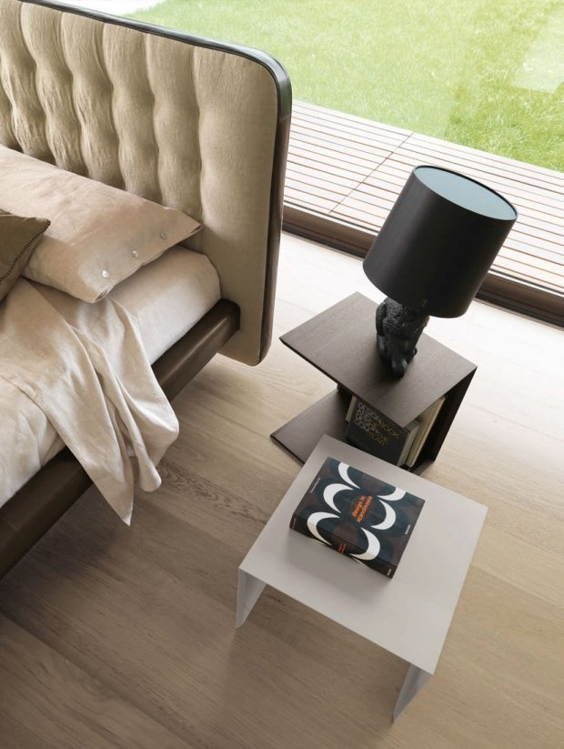 Extraordinary aesthetic quality thanks to the deep-buttoned upholstery on the headboard and to the Decò cover in fabric and leather. Extraordinary aesthetic quality thanks to the quilted headboard and to the Decò cover in fabric and leather.