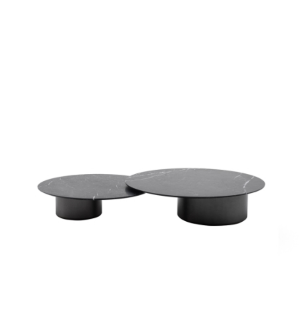 Imae coffee tables have a cylindrical base and a circular, projecting top that give rise to a geometrical and minimalist piece of furniture.
