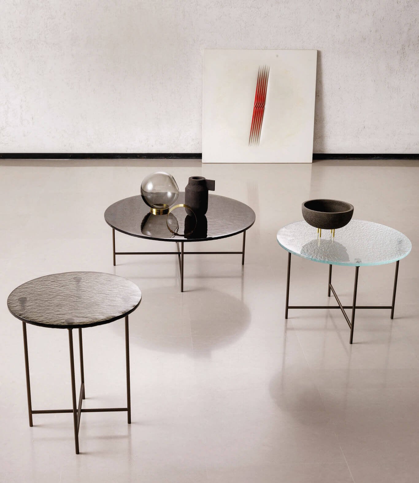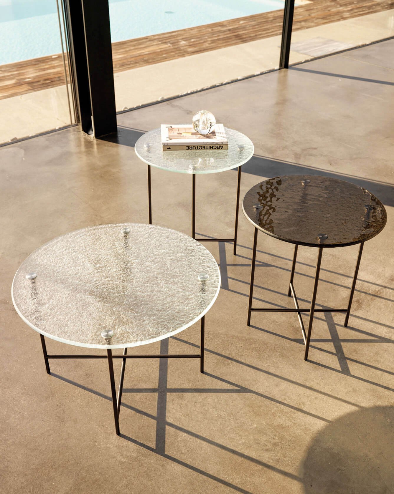 Nemu isn’t just a coffee table, it’s a living object. Its textured glass top has an irregular surface on the reverse side obtained by casting the molten glass, creating a handmade effect typical of the artistic creations made in the glass furnaces of Murano.