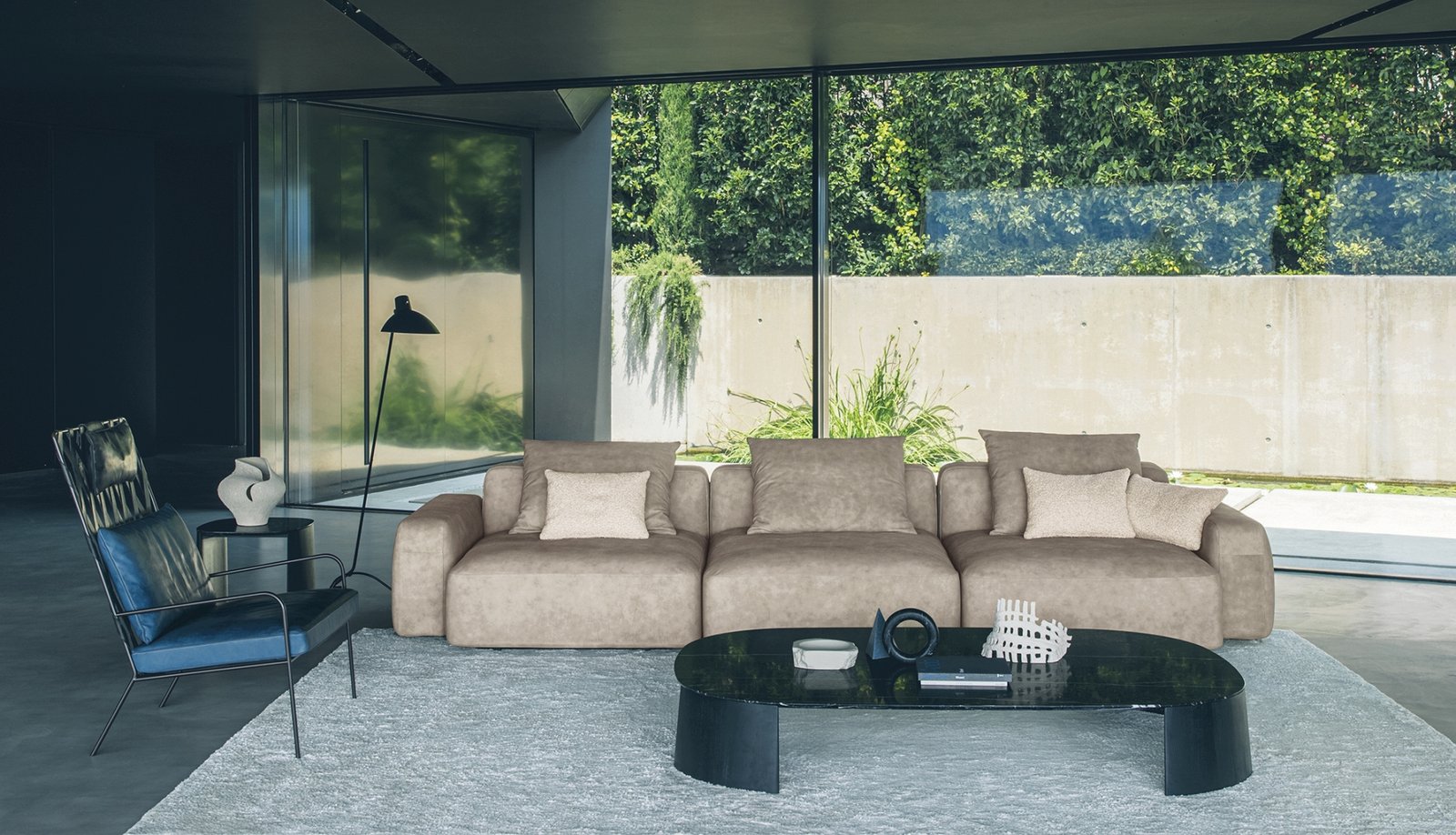Dorvan is a modular sofa with a vintage flair inspired by the Seventies. It consists of a modular, tubular structure into which the feet, the connecting elements and the back, seat and arm padding slot into place. Designed to create straight, corner or island arrangements, the sofa can be covered with any type of fabric or leather.