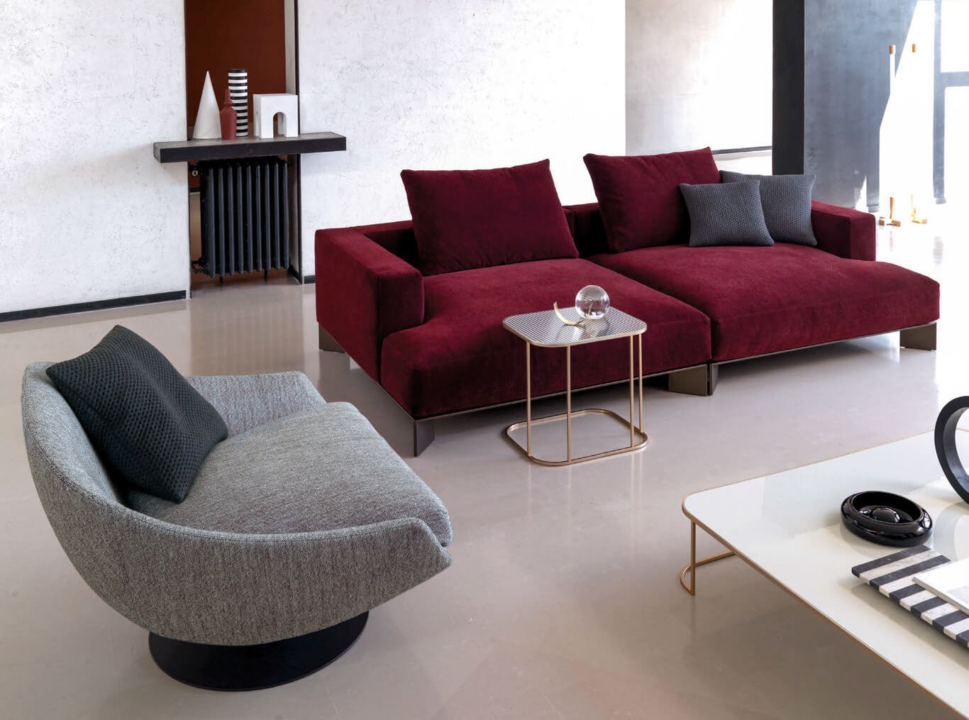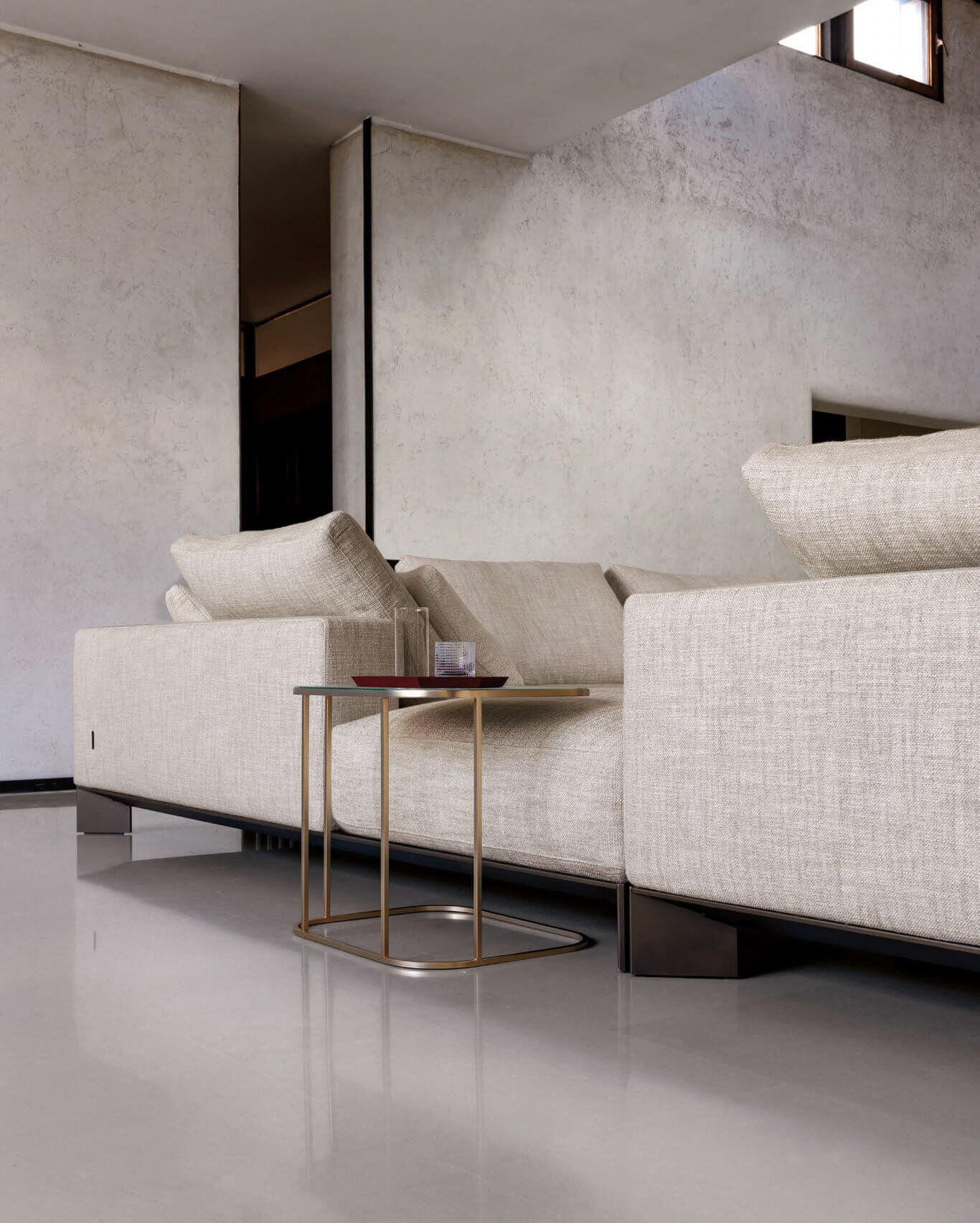 Minimalist lines and extensive modularity. Easton is a system consisting of many upholstered items that guarantee exceptional freedom of arrangement. The exclusive aluminum structure makes the seats look as if they are floating above the floor, giving Easton a light appeal.