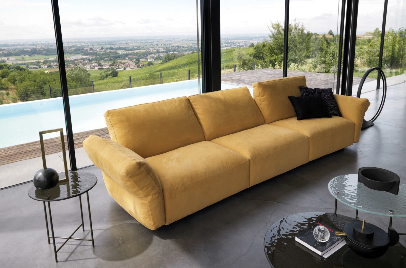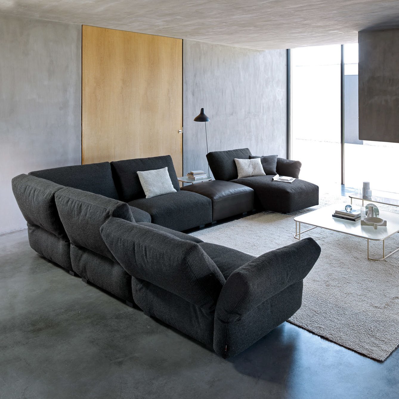 Hab is a seating system that delivers optimal comfort and features backs and armrests that can be adjusted from a seated position to suit one’s needs. The soft padding and the exceedingly comfortable lumbar/dorsal support surround one in a pleasant embrace. As part of its flexible modularity, Hab offers an ergonomic accessory that allows you to stretch your legs, highlighting the relaxation function of the sofa.