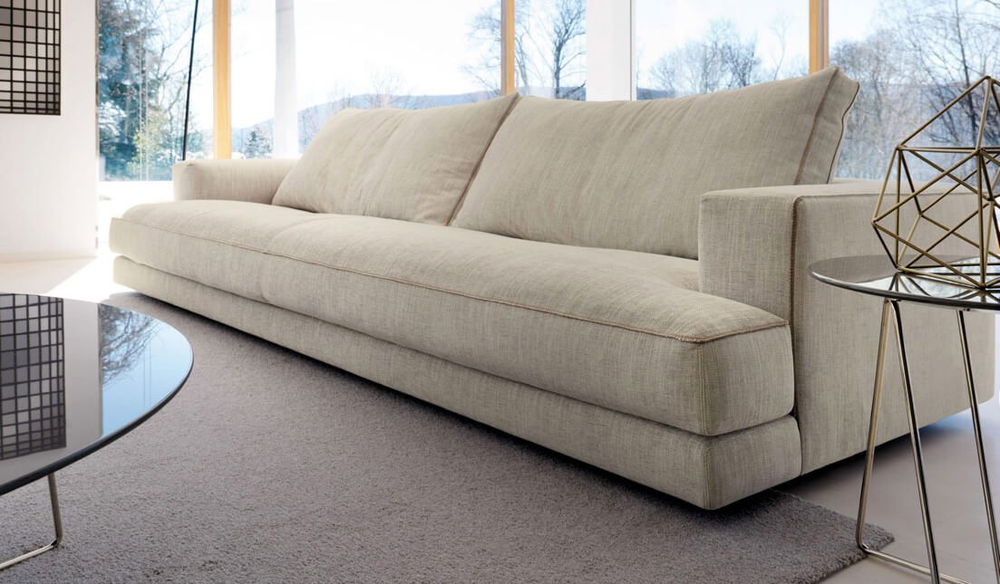 The Nathan sofa makes over traditional shapes in a contemporary key. Elegant proportions and refined details combine with wraparound comfort thanks to the soft padding of the seat and back cushions. Fabric-upholstered modelsfeature visible, matching-coloured stitching while the leather version sports seamless edges and the same shade of colour on both sides. The covers of this sofa are completely removable.